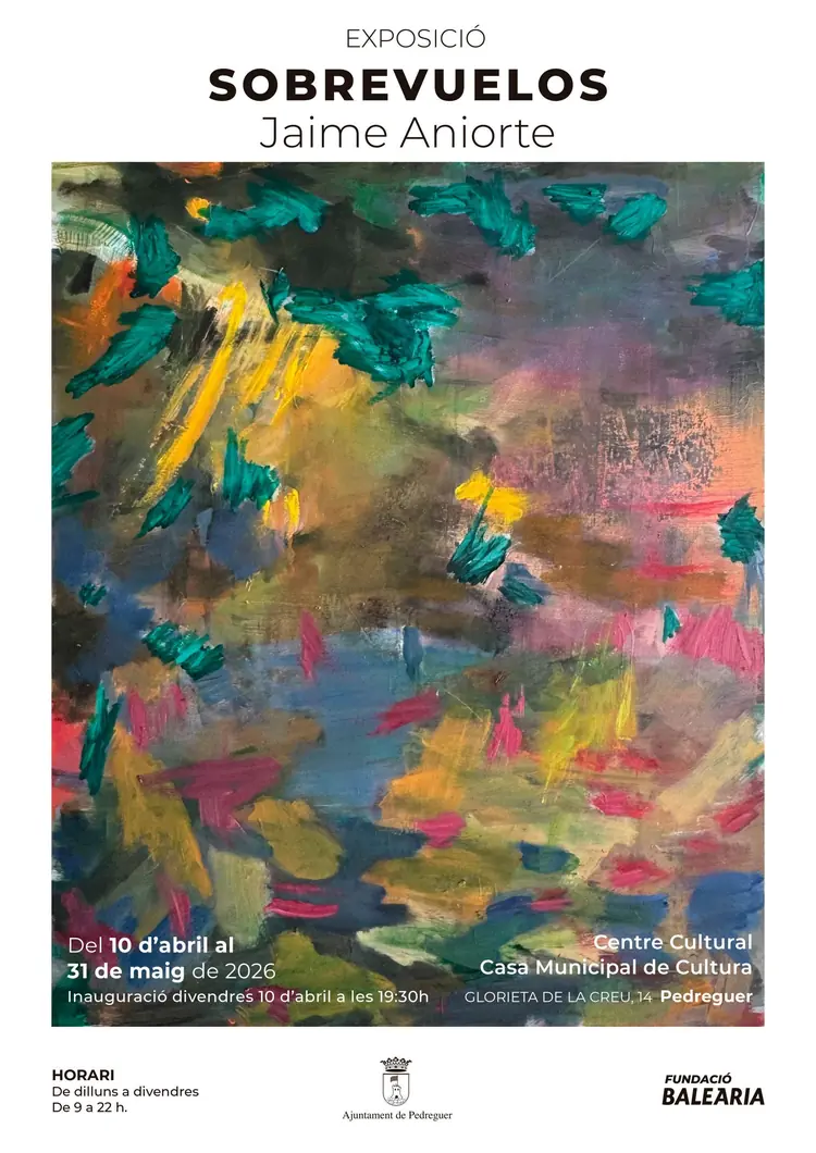 La Casa de Cultura de Pedreguer acoge una nueva cita con el arte de la mano del artista Jaime Aniorte y la Fundació Baleària. La idea del proyecto Sobrevuelos surgió durante una ruta por el Montgó hace poco más de un año, a partir de una experiencia directa del territorio, la luz y la orografía contempladas desde la Cova de l’Aigua. Desde ese punto elevado, la percepción del paisaje se transformó y comenzó a abrirse un espacio para la reflexión y la pintura.