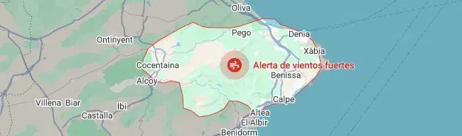 La comarca de la Marina Alta se encuentra este martes en alerta naranja debido a un fuerte temporal de viento que ha dejado rachas de hasta 90 kilómetros por hora, provocando diversas incidencias en toda la comarca. El municipio de Benissa está protagonizando diversos incidentes.