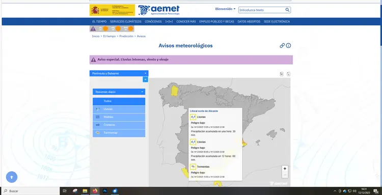 La comarca de la Marina Alta ha amanecido este domingo bajo intensas lluvias, una situación que vuelve a provocar el cierre de calles y la restricción del tráfico en distintos puntos. El Ayuntamiento de Dénia ha informado de la activación de la alerta meteorológica tras decretarse por la AEMET el nivel naranja por fuertes precipitaciones.