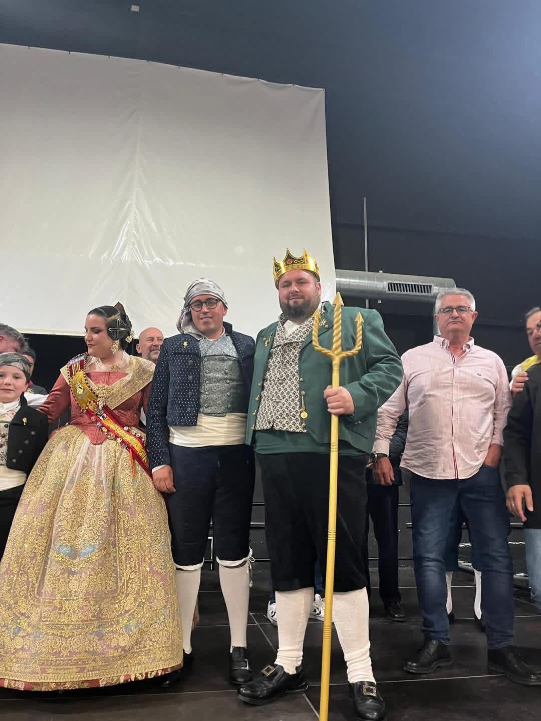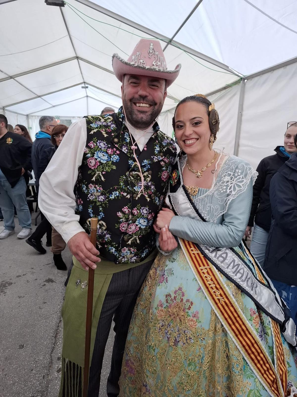 Falla Saladar: Paco Ferrer (Pacope), junto a Marah Gamero Pereira como Fallera Mayor, Lucía Martín Carbonell como Fallera Mayor Infantil y Daniel Martín Bernat como presidente infantil