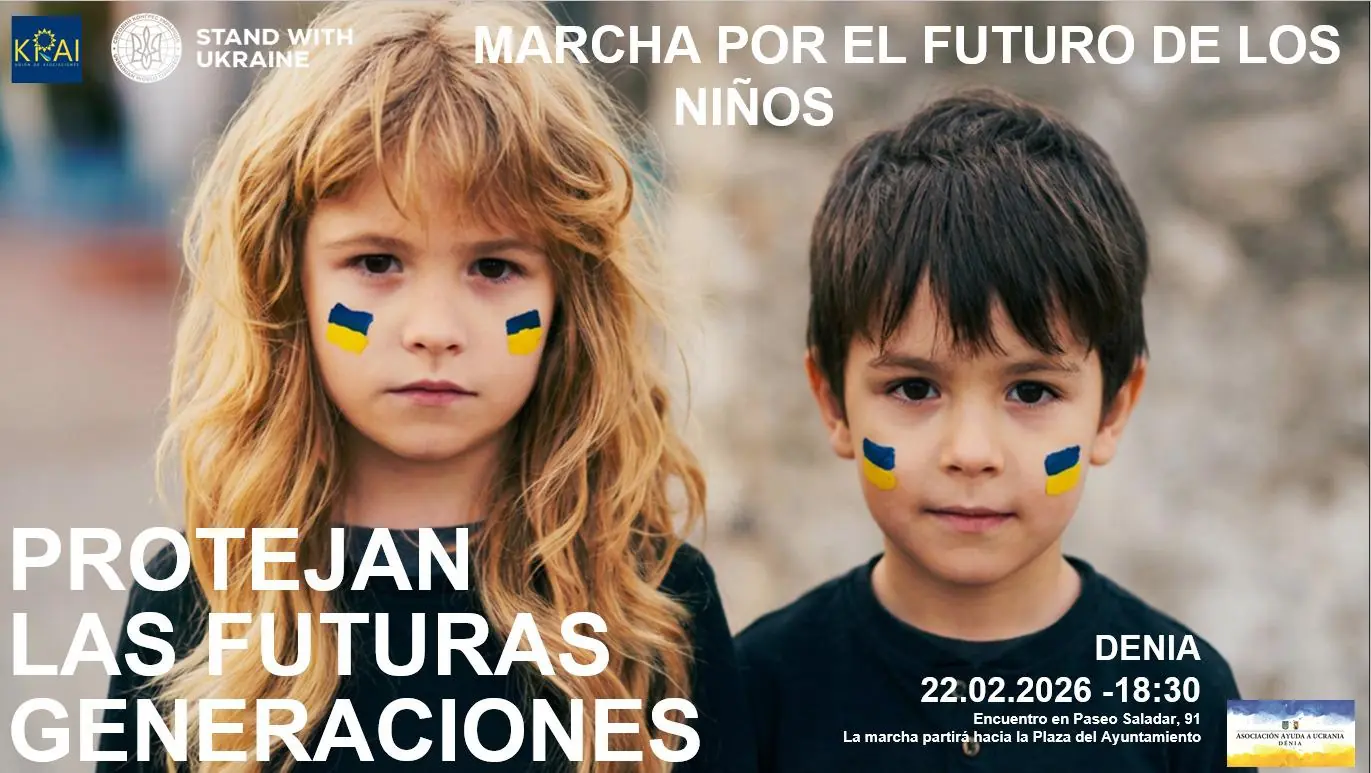 La ciudad de Dénia será escenario el próximo 22 de febrero de 2026 de una marcha solidaria en defensa del futuro de los niños, una iniciativa de apoyo al pueblo ucraniano bajo el lema “Protejan las futuras generaciones”. La movilización, impulsada por la Asociación Ayuda Ucrania Dénia, junto a entidades colaboradoras, tiene como objetivo visibilizar la situación que viven miles de menores afectados por el conflicto y reclamar un futuro en paz para las nuevas generaciones.