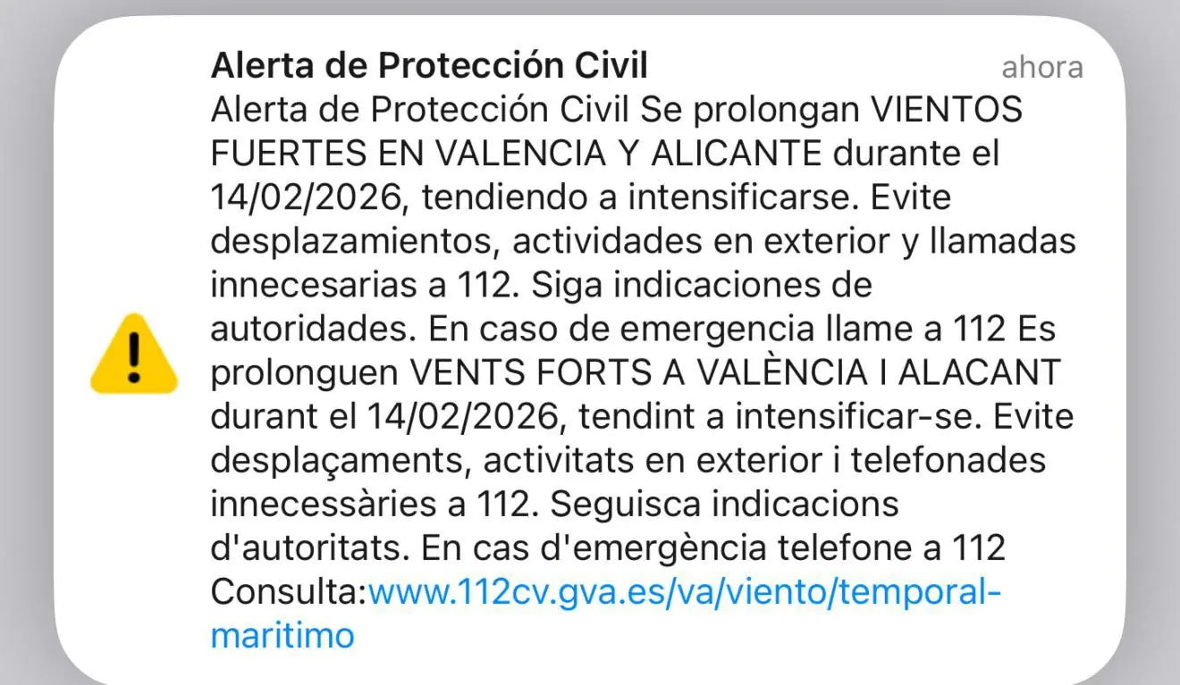 ES-Alert suena en los teléfonos de la Comunitat y la Marina Alta por el temporal de viento