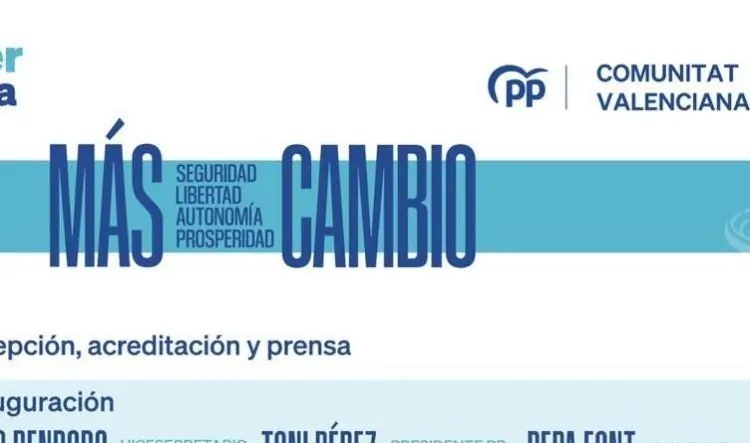 La Partido Popular de la Comunitat Valenciana celebra este sábado en Dénia su Jornada Interparlamentaria bajo el lema “Más cambio”, un encuentro que reunirá a diputados y senadores nacionales, diputados autonómicos y representantes provinciales con el objetivo de coordinar estrategias y reforzar la acción política en la Comunitat.