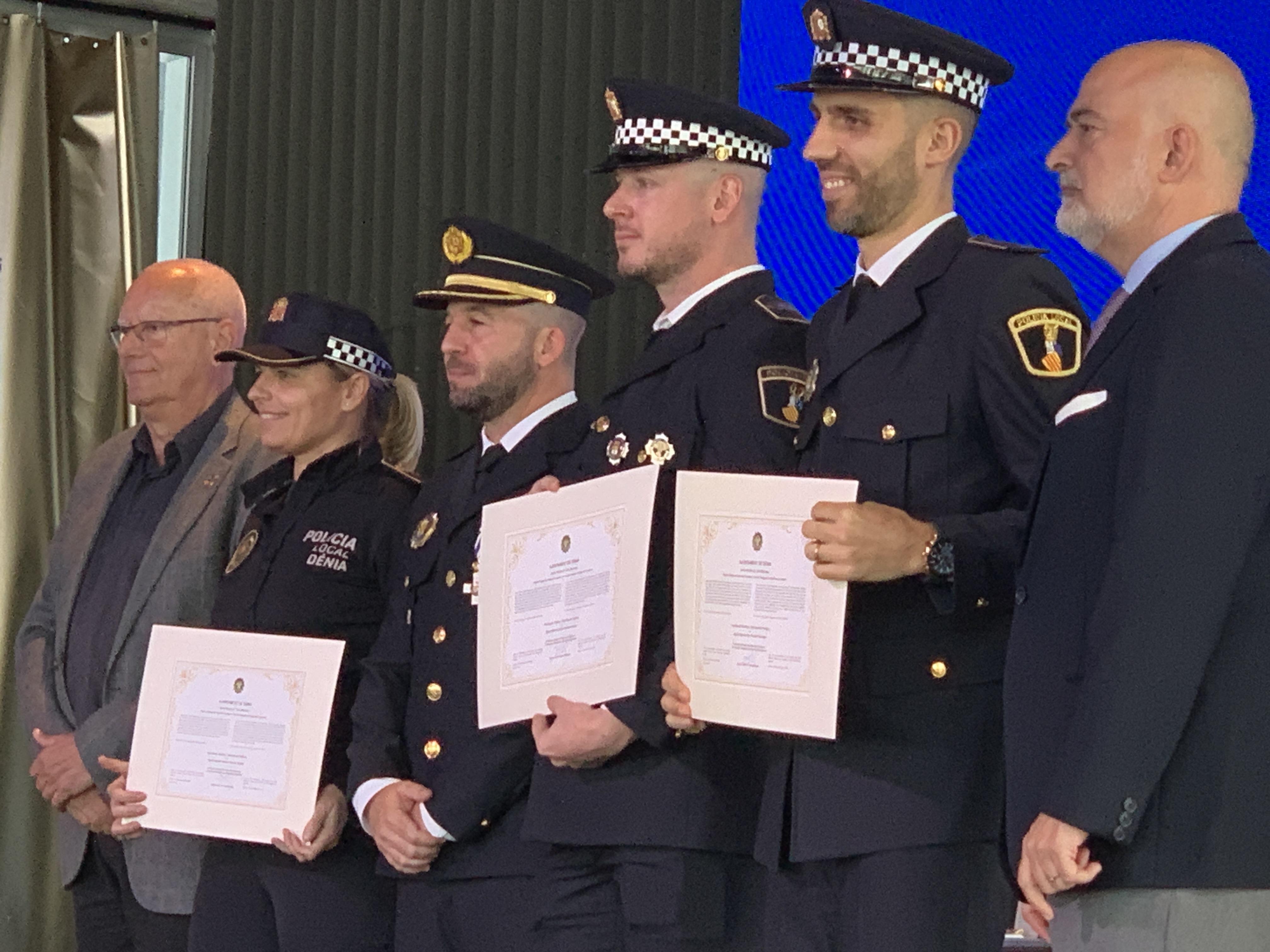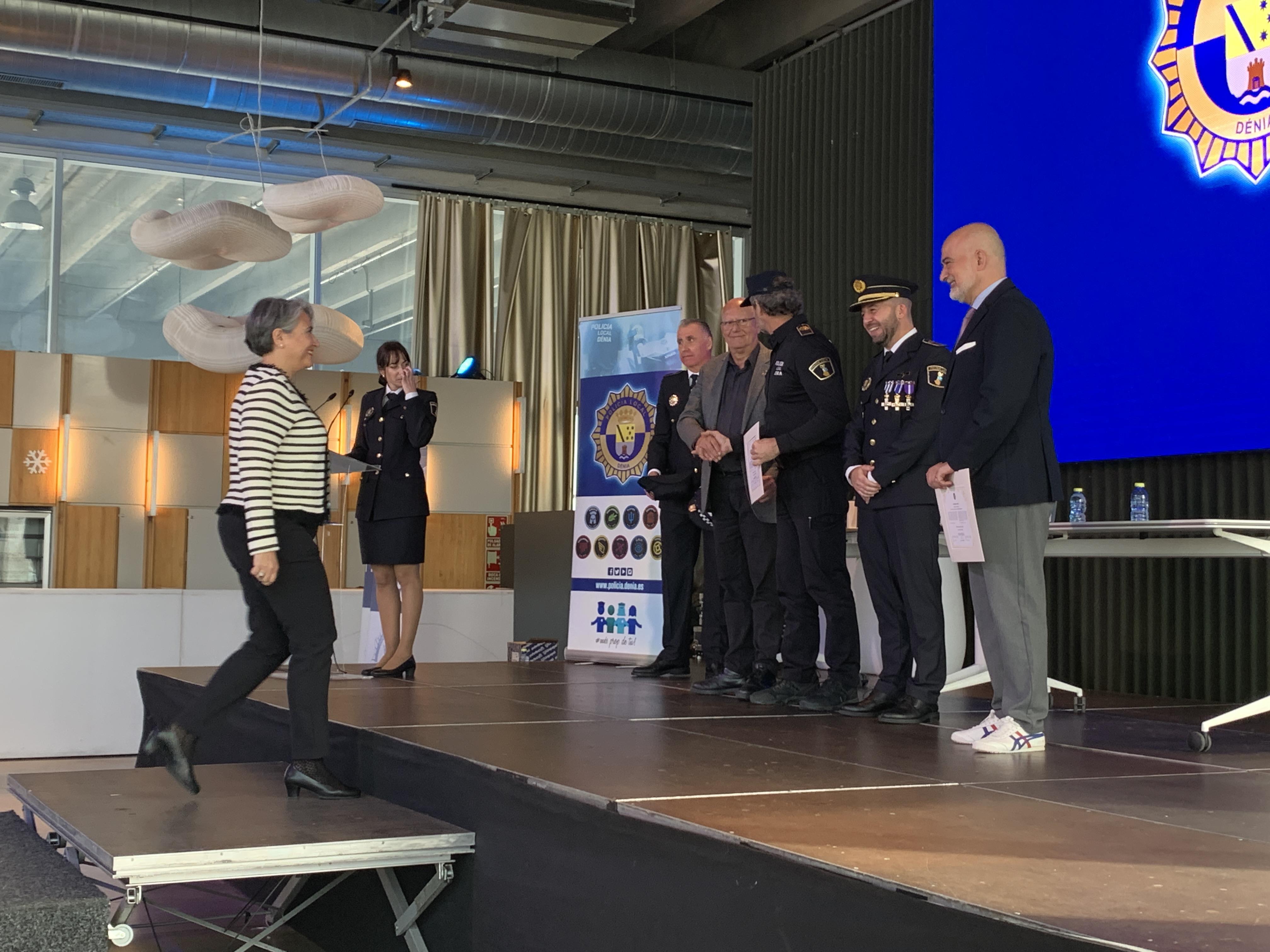 Dénia ha celebrado hoy jueves el Día Nacional de la Policía Local con un acto institucional en el que se ha rendido homenaje a varios agentes por su labor ejemplar, así como a la asociación Matria, en reconocimiento a su compromiso social. El evento ha reunido a autoridades municipales, mandos policiales y representantes de diferentes cuerpos de seguridad de la Marina Alta para poner en valor el trabajo diario que desempeñan los agentes de la Policía al servicio de la ciudadanía, destacando su profesionalidad, dedicación y vocación pública.