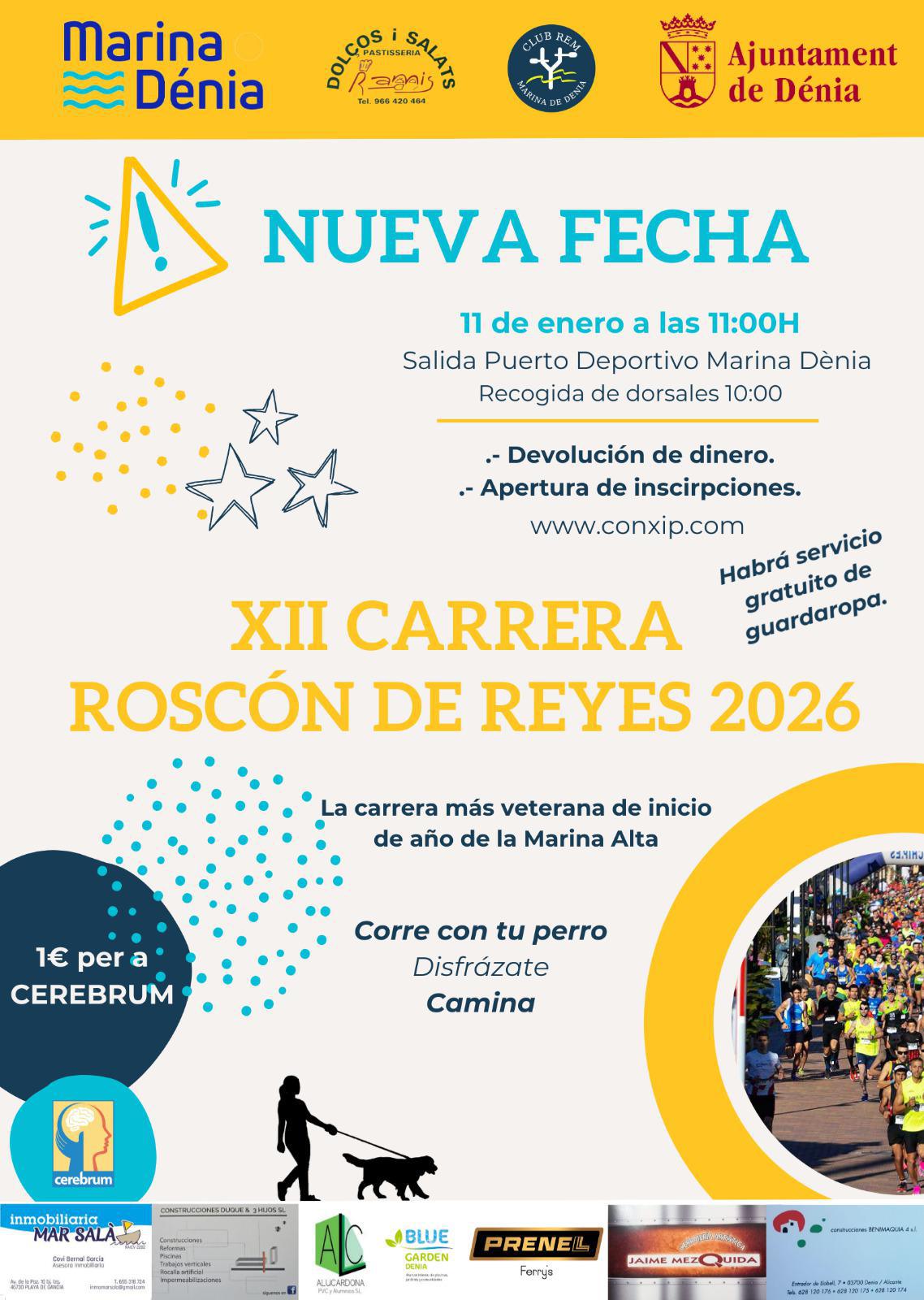 La duodécima edición de la Carrera Roscón de Reyes Marina Dénia ya tiene nueva fecha. La prueba, organizada por el Club de Rem Marina Dénia y prevista inicialmente para el domingo 4 de enero, tuvo que ser suspendida debido a las lluvias y a las adversas condiciones marítimas. Finalmente, la organización ha confirmado que el evento deportivo se celebrará el próximo domingo 11 de enero.