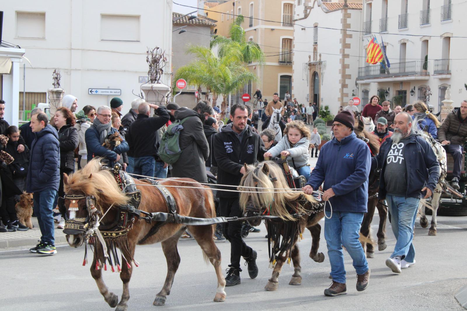 La jornada va començar amb la cercavila de cavalls i carros pels carrers del centre d’Ondara i, després de la missa dominical, es va traslladar la imatge de Sant Antoni fins al recinte del Prado, on es va realitzar la benedicció popular dels animals. L’acte va estar oficiat pel rector de la localitat, Ximo Silvestre.