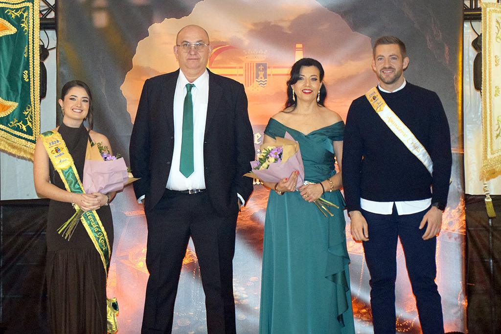 La velada sirvió también para rendir homenaje a los cargos de 2025. Las Abanderadas Elvira Vives Segarra, de la Filà Schaitans, y Ana Bisquert Ribes, de la Filà Bandoleres, junto a los Capitanes de la Filà Pirates de Sant Jaume, Rosa Zamora Selva y José Leal Reina, recibieron el reconocimiento por su dedicación y por la excelente representación realizada durante el pasado año. Elvira Vives no pudo asistir por motivos personales, aunque su implicación y entrega fueron destacadas y aplaudidas por la familia festera. Ana Bisquert tomó la palabra para despedirse con un emotivo discurso en nombre de ambas.