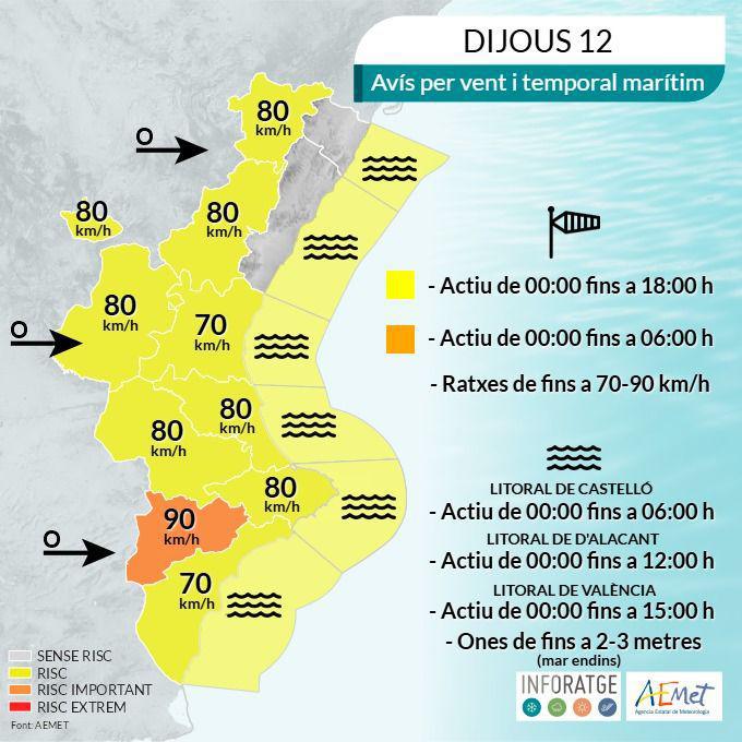 Durante la pasada noche se han registrado vientos que han superado los 70 km/h en las estaciones meteorológicas del municipio. Como medida preventiva, se han clausurado espacios como el parque de Torrecremada, el Bosc de Diana, la plaza Jaume I y el Castell. Asimismo, se han suspendido todas las actividades municipales previstas al aire libre y se han cerrado las instalaciones deportivas exteriores.