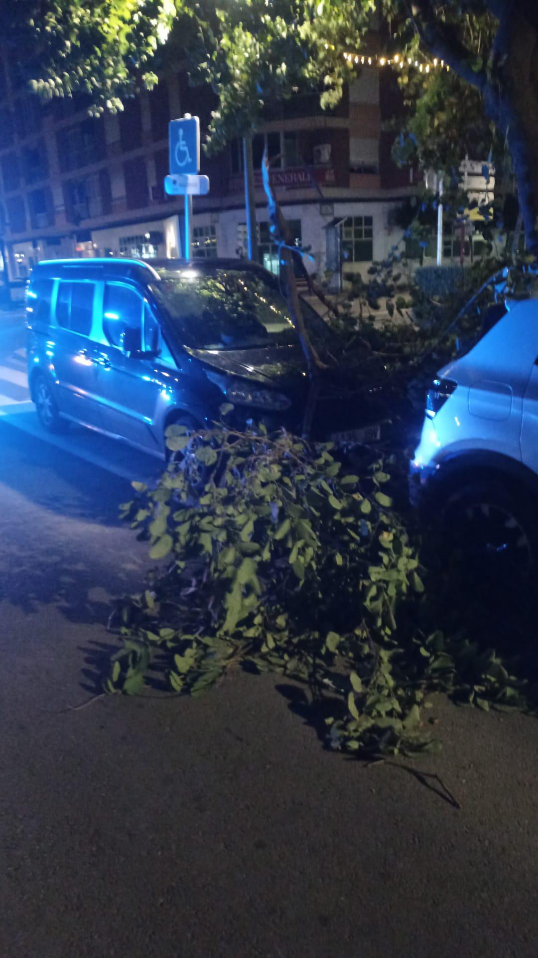 Además, se han desprendido ramas en distintos puntos, como en la carretera de Dénia a Xàbia, a la altura del Real Club Náutico; en la CV-735, cerca de la punta de Benimaquia; y sobre un vehículo estacionado en el paseo del Saladar, en la intersección con la calle Diana. Este último incidente obligó a la Policía Local a cortar el tráfico en la zona hasta la llegada de los bomberos para retirar los restos.