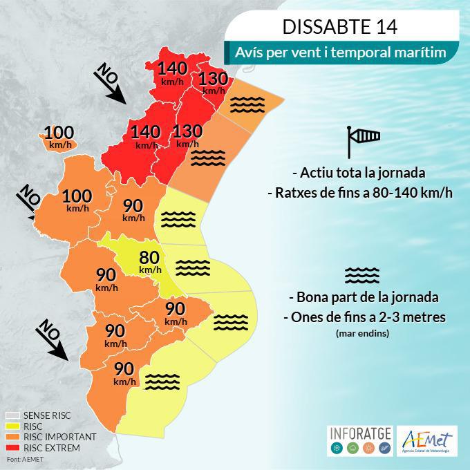 El Ayuntamiento de Calp ha anunciado la adopción de medidas extraordinarias ante la previsión de fuertes rachas de viento y la activación de la alerta naranja a partir de hoy a las 12:00 horas.