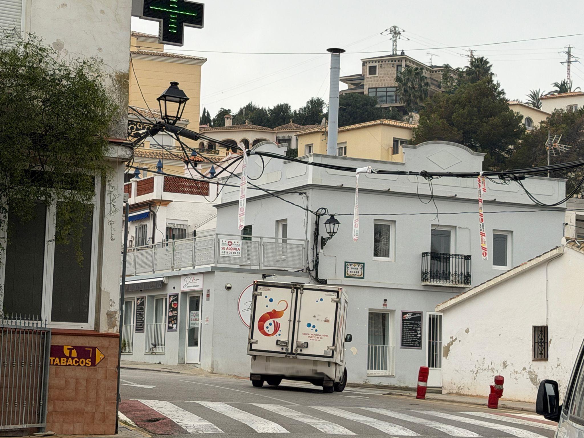 Un camión equipado con grúa ha provocado este martes daños en el cableado aéreo de telefonía en la zona de La Pedrera, en Dénia, al enganchar y arrancar parte de la instalación a su paso.