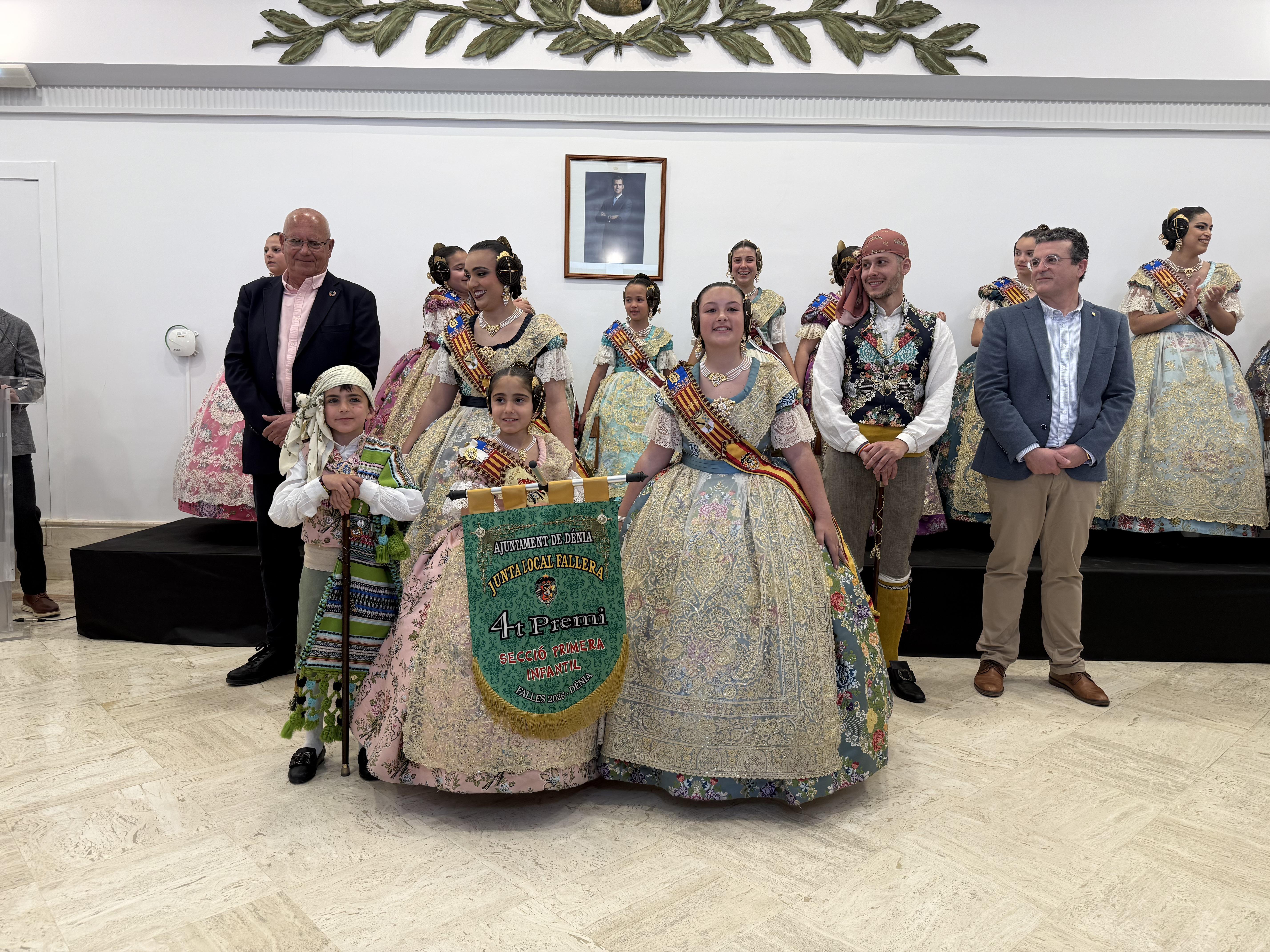 El primer premio ha sido para la falla Baix la Mar con su monumento “És temps de Baix la Mar”, que ha obtenido 177 puntos. La obra, realizada por Enric Ginestar, ha sido muy celebrada por la comisión, encabezada por el presidente Manuel Marco y la fallera mayor infantil Chloé Cabrera. Además, también ha sido reconocida con el premio a la mejor pintura.