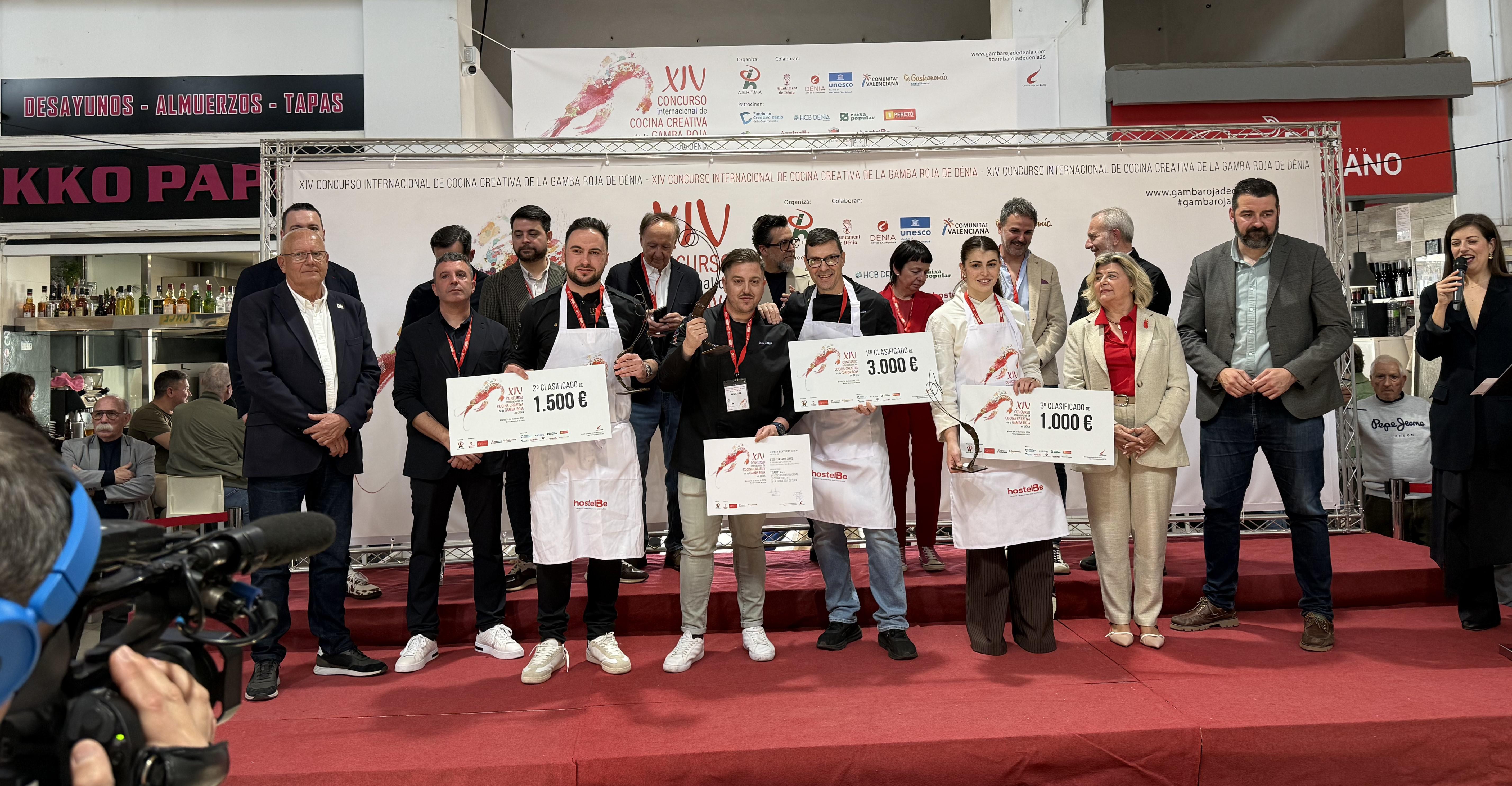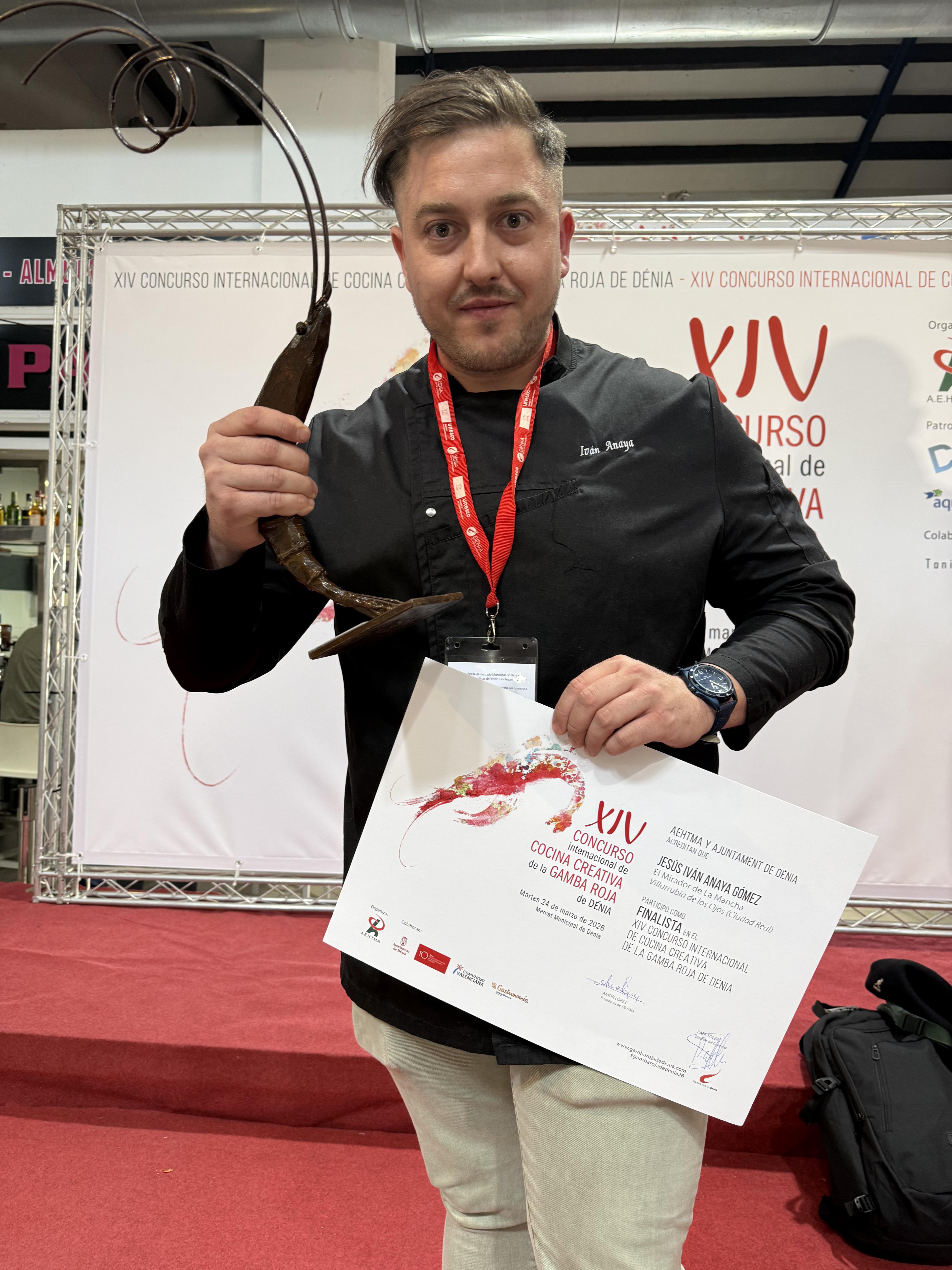 El primer premio del XIV Concurso Internacional de Cocina Creativa de la Gamba Roja de Dénia ha viajado hasta Villarubia de los Ojos, en Ciudad Real. El chef Jesús Iván Anaya, del restaurante El Mirador de la Mancha, se ha proclamado vencedor con su propuesta ‘Gamba Roja al Ajillo’ en esta edición celebrada este 24 de marzo en el Mercat Municipal. El certamen ha estado organizado por la Asociación de Empresarios de Hostelería y Turismo de la Marina Alta (Aehtma), en colaboración con la Concejalía de Turismo del Ayuntamiento de Dénia, y bajo la dirección del cocinero Rafa Soler.