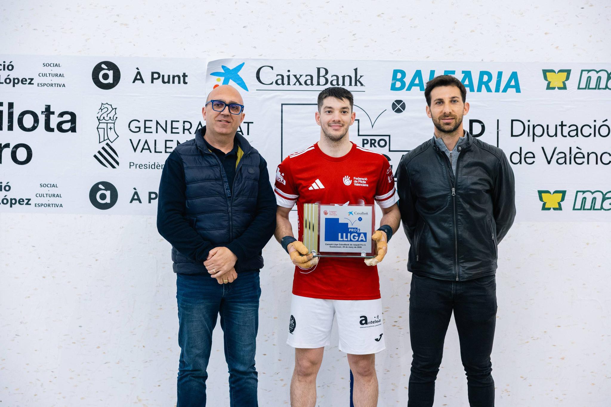 L’equip Ajuntament d’Ondara – Portal de la Marina ha aconseguit una fita destacada al trinquet de Guadassuar en proclamar-se campió de la Lliga CaixaBank de Raspall Pro2. La victòria, per 25–15 davant el conjunt format per Bonillo, Rosen i Izan (Sueca), va arribar gràcies a la gran actuació dels germans Terrades, que han completat una temporada excel·lent i es consoliden com a figures clau de l’esport local.